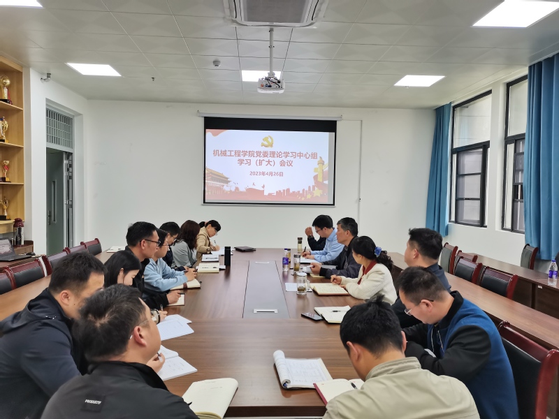 4月26日,机械工程学院召开党委理论学习中心组学习(扩大)会议,传达学习贯彻习近平新时代中国特色社会主义思想主题教育工作会议精神,研究部署贯彻落实工作。学院党政领导班子成员、党委委员、组织员、各支部书记及支部委员参加学习,会议由学院党委书记何照泽主持。
