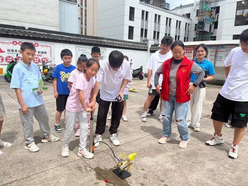 实践期间,航模协会成员吕孝卫和团队成员陈达分别为小朋友们带来了“水火箭”课和“自制四轮驱动车”的内容。介绍了水火箭的原理,动手教小朋友们制作水火箭。小朋友们将理论和实际相结合,在实践团队队员们的帮助下,克服困难,拥有了属于自己的水火箭。最后实践队员们带领小朋友们室外进行比赛。生动形象的自制汽车课一下就勾起了小朋友们的好奇。实践队员分发四驱车零件,带领小朋友们自己动手组装。最终看到自己的车在地面跑了起来,脸上洋溢着快乐的笑容。小朋友们不仅学到了理论知识,更将理论知识与实践相结合,培养了小朋友们动手能力和独立思考的能力。