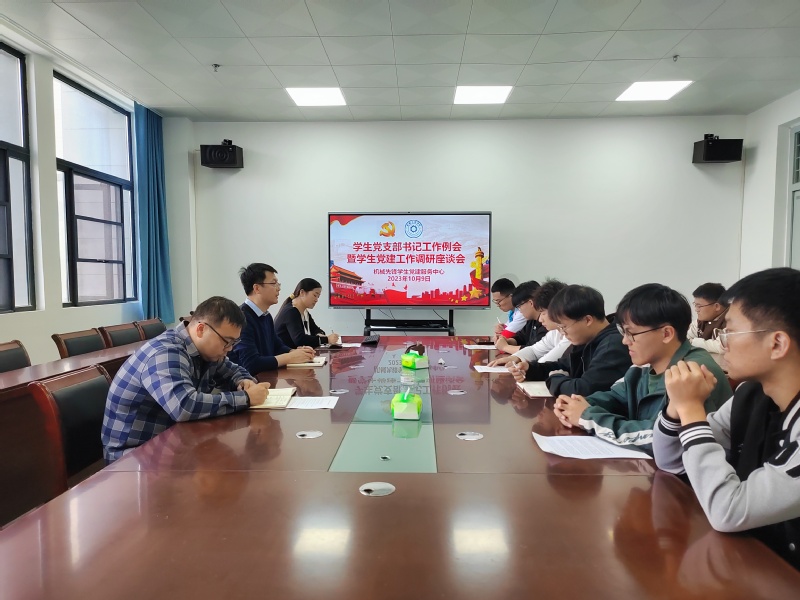 2023年10月9日,机械工程学院在崇学楼党员活动室召开学生党支部书记工作例会暨学生党建工作调研座谈会,学院党委副书记、纪委书记李融、学生支部书记方钱、王靖国出席会议,“机械先锋”学生党建服务中心学生党员代表参加会议,会议由李融主持。