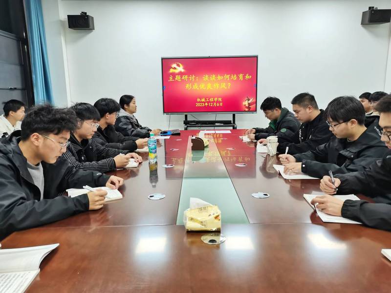 为深入学习贯彻党的二十大精神和习近平总书记关于加强作风建设的重要论述,切实加强学院师生作风建设,2023年12月6日,机械工程学院党委党校组织入党积极分子和发展对象开展“谈谈如何培育和形成优良作风”的主题研讨活动。活动由学院党委党校培训班班主任方钱主持。