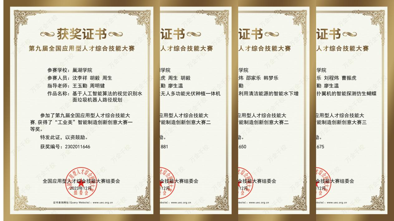 近日,由教育部全国应用型人才综合技能大赛委员会主办的第九届全国应用型人才综合技能大赛成绩公布,我校学子取得佳绩,斩获全国一等奖1项、二等奖2项、三等奖1项。