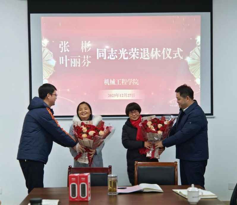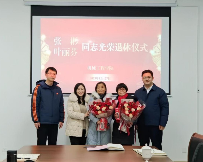 为进一步体现对退休同志的关爱,增强退休同志的政治获得感、组织归属感和职业荣耀感,2023年12月27日,机械工程学院分工会举行教职工光荣退休仪式,2023年退休同志张彬、叶丽芬以及学院全体教职工出席仪式。