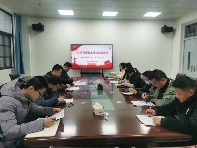 2024年1月18午,机械工程学院教工第党支部在学院党员活动室组织开展2023年度民主评议党员工作支部全体党员参加支部书记胡健主持会议