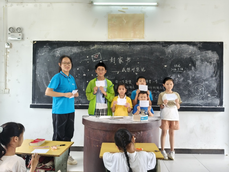 一封家书,万斤情感。志愿者们将理论与实践相结合,让同学们以一封信的方式给亲人写出自己心里话,表达对远方亲人的思念。