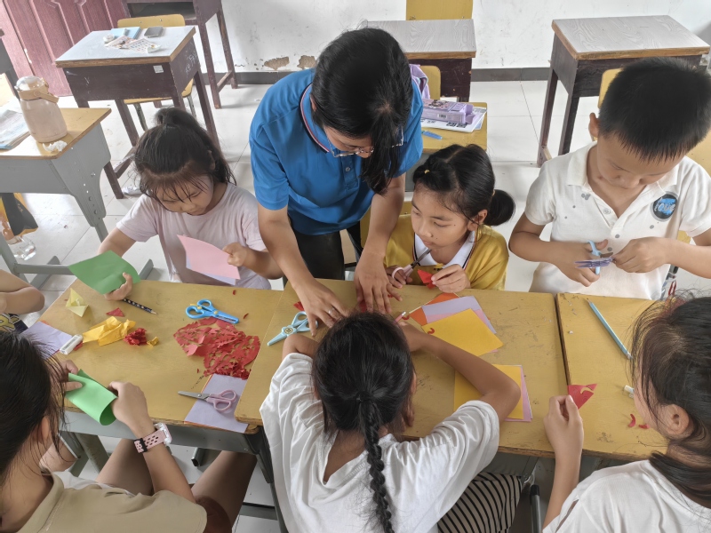 薄薄卡纸,累累硕果,团队组织了剪纸折纸工艺学习。留守儿童们不仅收获了亲自动手的实践成果,还丰富了他们内心对于生命的憧憬和自我成就感。