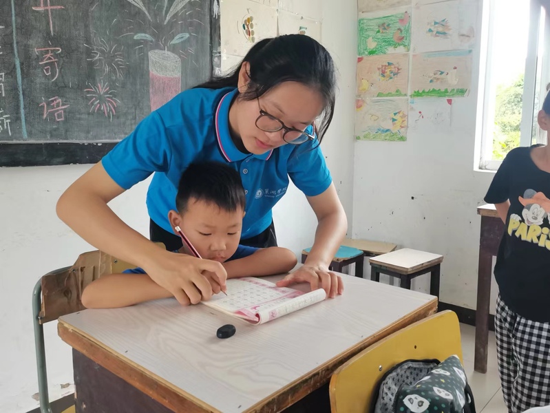 稳抓文化课教育。团队成员根据高年级学生各自学业的缺漏,进行了数学、英语、物理一对一专门辅导,对幼儿汉字书写进行了纠正与指导。丰富的音体美教育。团队成员给同学们教授了五线谱、简笔画;志愿者们还组织同学们进行户外足球、篮球比赛活动。