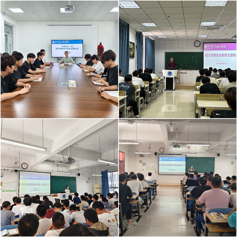 为进一步加强学生安全教育管理工作,增强学生的安全防范意识,机械工程学院各班级结合实际情况开展国庆节安全教育,紧绷学生安全意识之弦,筑牢学生安全之基,抓实学生安全教育之举,切实提高学生安全意识。