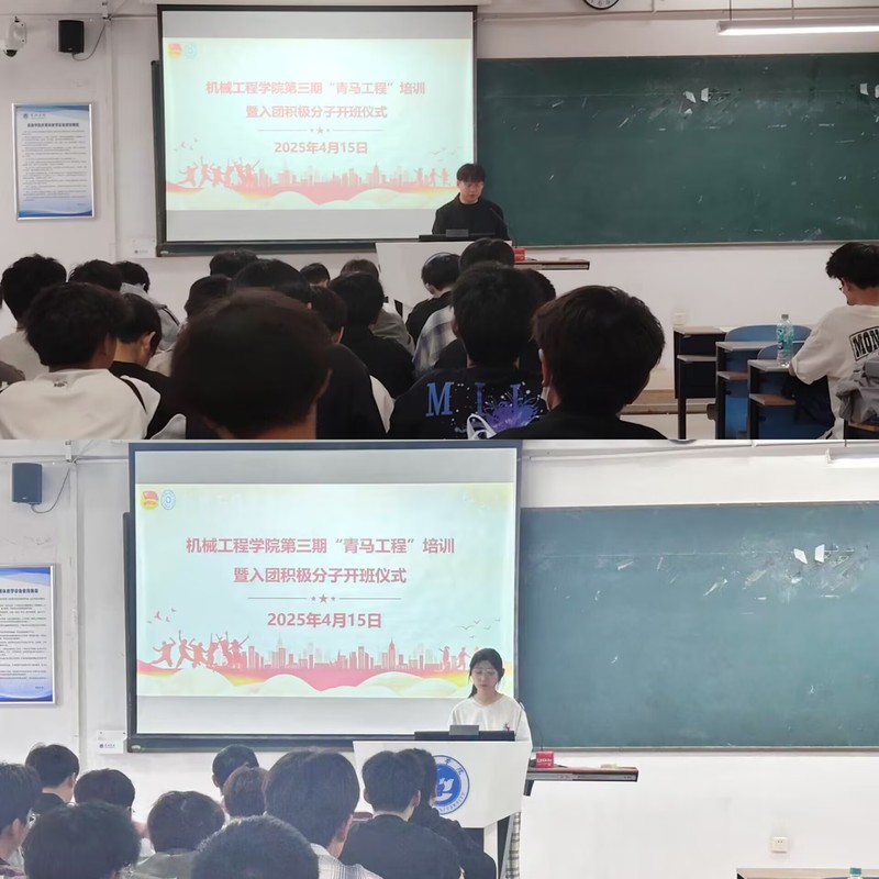 为提升入党积极分子的理论素养,做好入团积极分子的培养工作,2025年4月15日中午,机械工程学院团委于在慎思楼中201教室举办第三期“青马工程”暨入团积极分子培训开班仪式。团委书记苏洁红、全体第三期“青马工程”学员及入团积极分子全体学员参加。开班仪式由学院团委副书记谢丹丹主持。