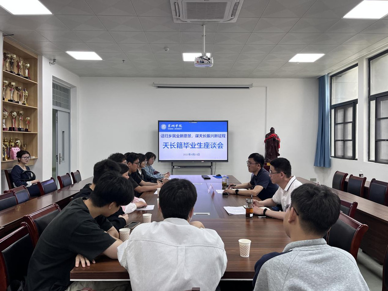 双选会结束后,天长市人社局走进学院会议室开展了天长籍毕业生专场座谈会。围绕家乡就业政策、产业发展现状及人才需求,校政企三方深入沟通,为天长籍学生介绍家乡发展机遇,鼓励毕业生返乡就业创业,助力地方经济建设,同时也为学生提供了更多元的就业选择。