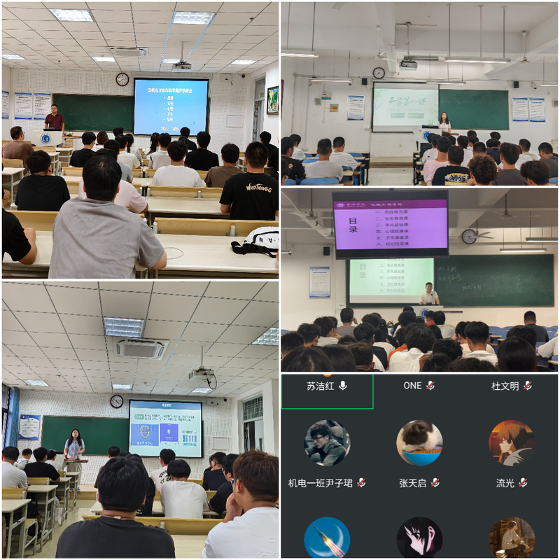 机械工程学院高度重视“开学第一课”系列活动,通过多维度、立体化的教育引导,为学生补足了思想“精神钙”、筑牢了安全“防护网”、拧紧了学风“螺丝钉”,更让学生在温暖关怀中感受到学院的育人温度。(文/苏洁红 图/辅导员提供 初审/李融 终审/夏桂林 发布/苏洁红)