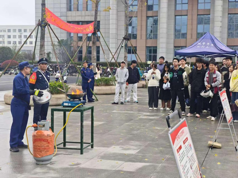 为普及消防知识、增强师生消防安全意识与自防自救能力,在全国第34个消防日来临之际,2025年11月9日上午,机械工程学院组织120余名学生,参与学校联合安巢经开区消防救援大队开展的2025年“119”全国消防日主题活动。