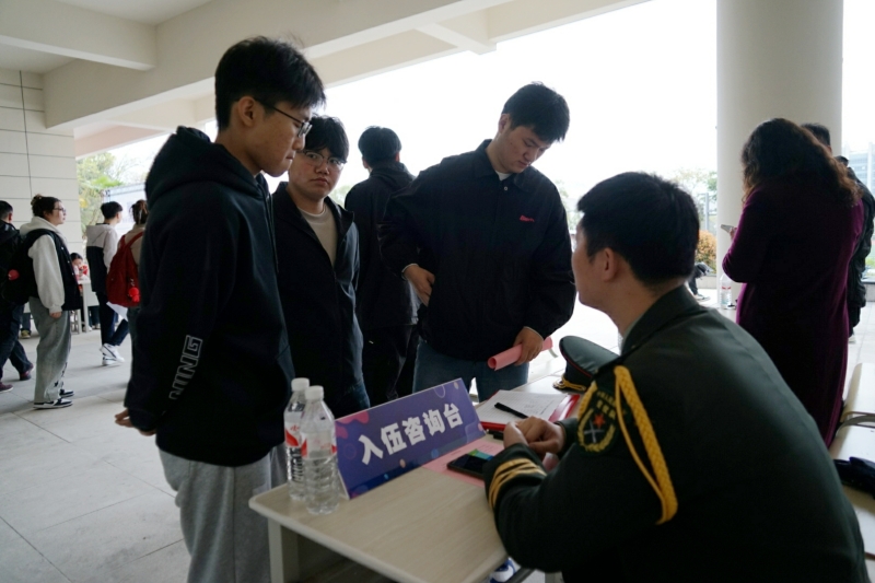 城市推介会后,与会领导深入专场招聘会现场,详细了解参会用人单位的招聘情况,并与现场同学亲切交流。此次安巢经开区、巢湖市专场招聘活动共邀请安徽国通电力、中粮粮油、安徽富煌、大恒能源、中显智能等50余家企业来校招贤纳才,提供近1000岗位需求。招聘现场人头攒动,氛围热烈,参会学生积极物色意向单位、主动投递简历,仔细向用人单位询问了解单位福利待遇、晋升发展等问题,企业招聘人员热心解答,向在场学生介绍企业工作环境、岗位需求、企业文化等情况。此次招聘现场设有征兵咨询、就业指导咨询专区和服务台,学校指南针工作室成员为现场学生精准求职就业提供“一对一”指导,帮助学生分析就业形势、完善优化求职简历。