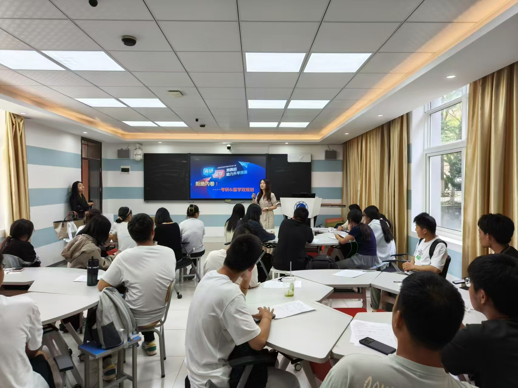 9月27日下午,必赢76net官网在明德楼106教室组织开展考研留学规划主题沙龙活动,活动吸引了外语、机械、旅游等专业30余名学生参加。