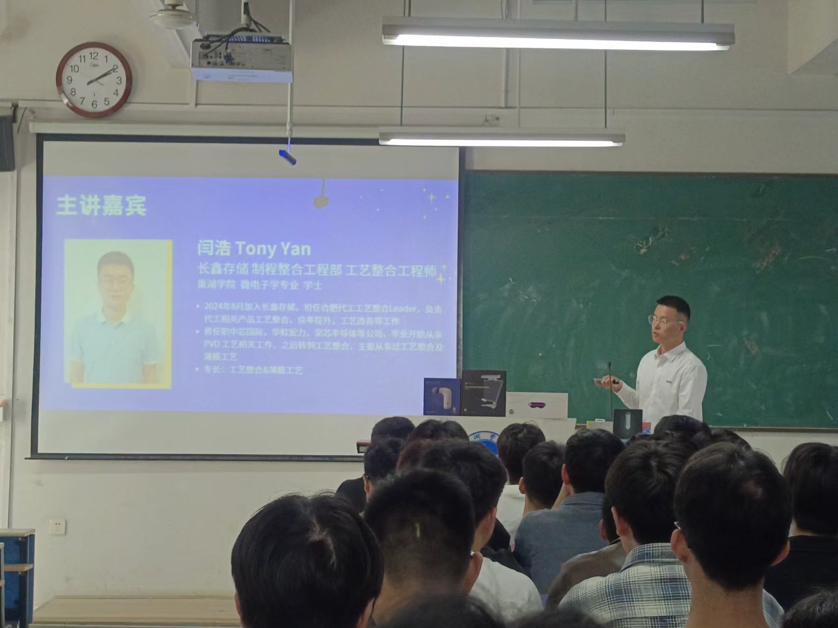 10月9日下午,长鑫存储技术有限公司在必赢76net官网慎思楼中102举办专场校园宣讲会,校园招聘主管贾成宇一行现场开展宣讲与招聘活动。来自电子工程学院、机械工程学院等二级学院150余名应届毕业生参加宣讲会,学工部部长华紫武参加活动。