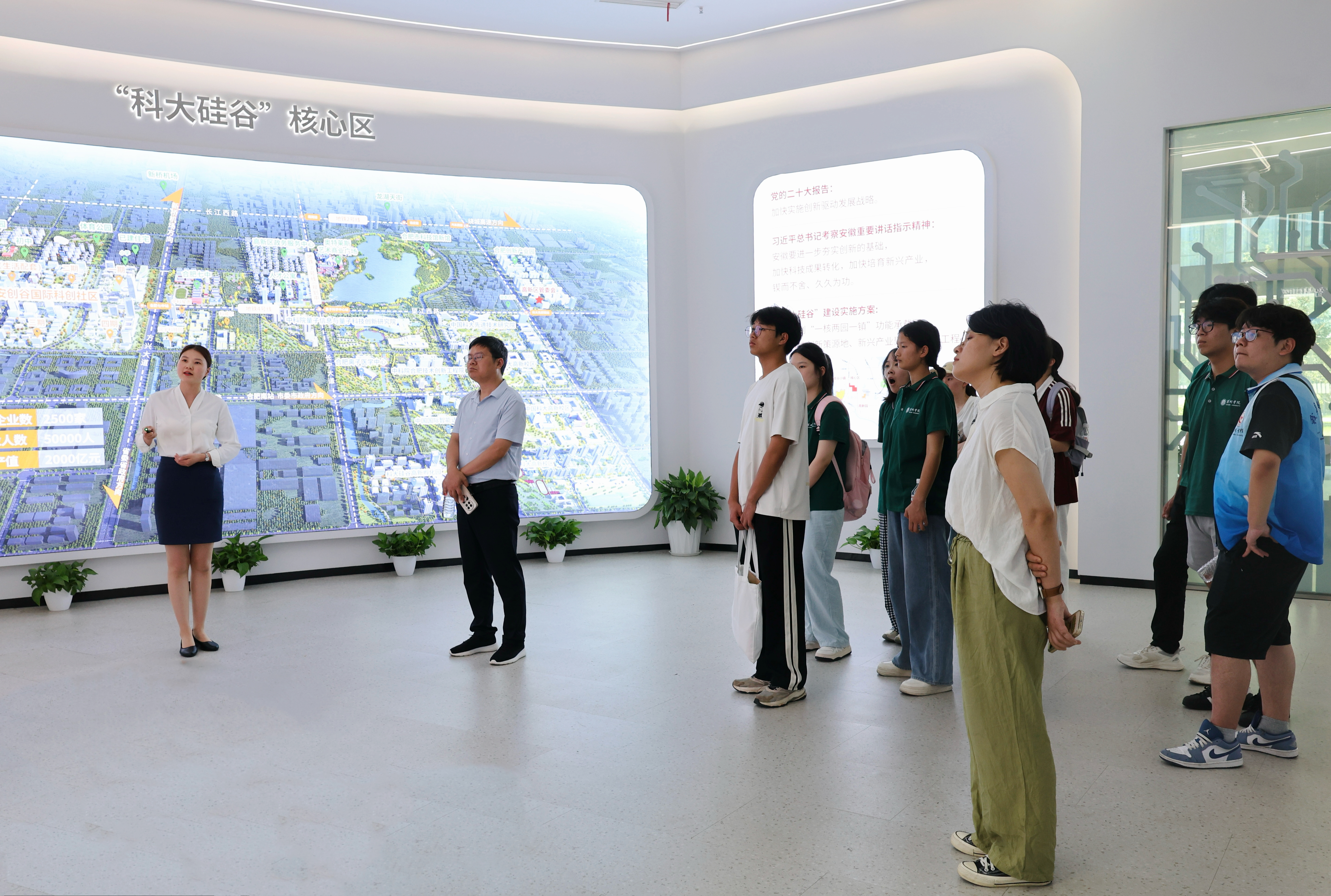 调研团队赴安徽省工业和信息化厅、合肥高新区中安创谷、芜湖产业创新馆等政府、园区解码区域经济“新坐标”。师生共同走进省工信厅光储办,与工作人员近距离交流探讨当前先进光伏和新型储能产业在安徽省的发展情况、未来前景及产业人才需求现状,探索学校学科建设与人才培养思路;在合肥中安创谷展厅,同学们了解到园区建设运营、项目孵化和创新发展等情况,亲身感受空中成像交互等新技术带来的产业升级;芜湖产业创新馆九大产业展厅系统展示了芜湖新能源汽车等新兴产业、支柱产业的最新成就,奇瑞汽车、钻石飞机等现场展品让同学们不禁感叹芜湖高、新、尖的产业创新成果。实践期间,师生累计走访合肥市、芜湖市以及学校周边区域优质企业9家,涵盖新能源汽车、智能制造、节能环保、机器人及智能装备等多个新兴产业,较为清晰地了解了环巢湖区域产业布局情况。