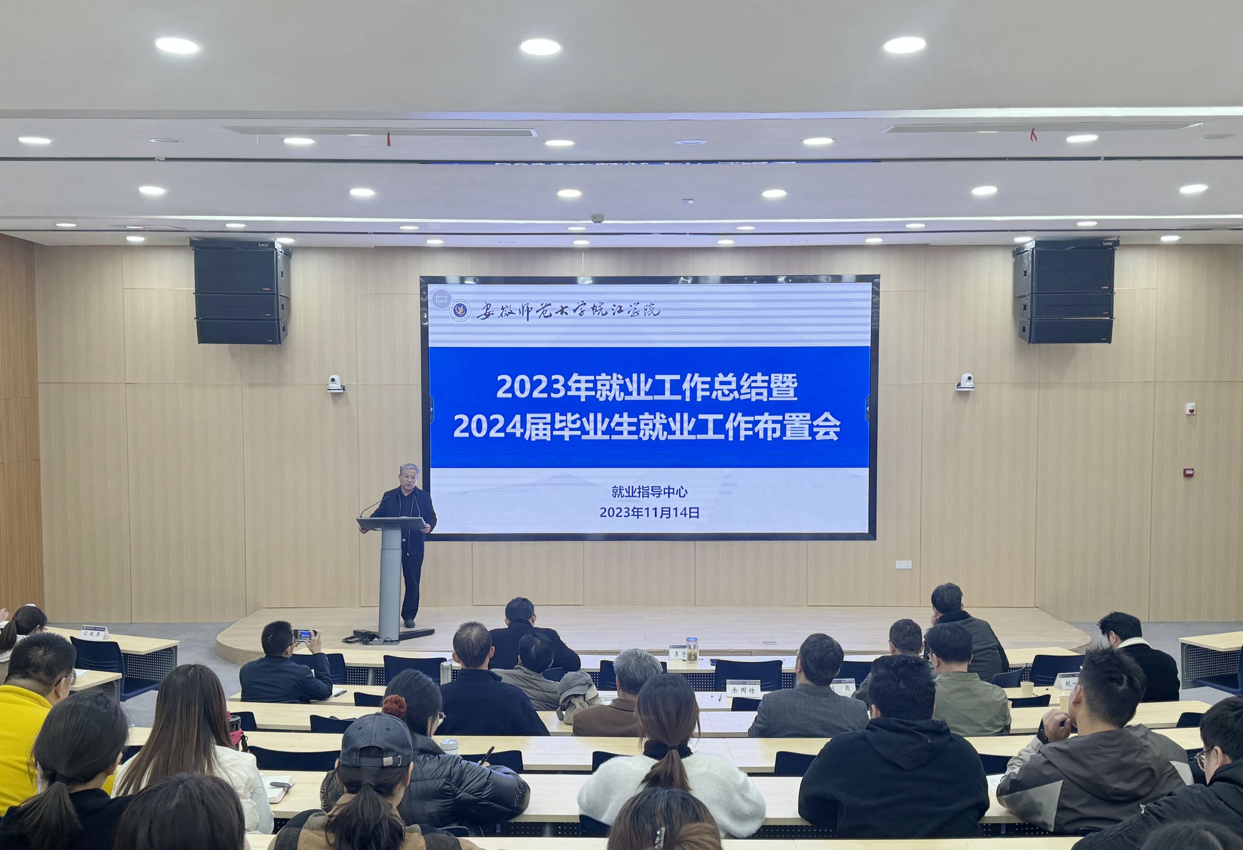 1114,学院在江北校区7号楼1楼报告厅召开专题会议,交流2023年就业工作经验,对2024届毕业生就业工作进行动员部署。院李子华、副院长黄亮出席会议,学院就业工作领导组成员各系副书记及全体辅导员参加会议。会议由院党委副书记、纪委书记、副院长左方敏主持。