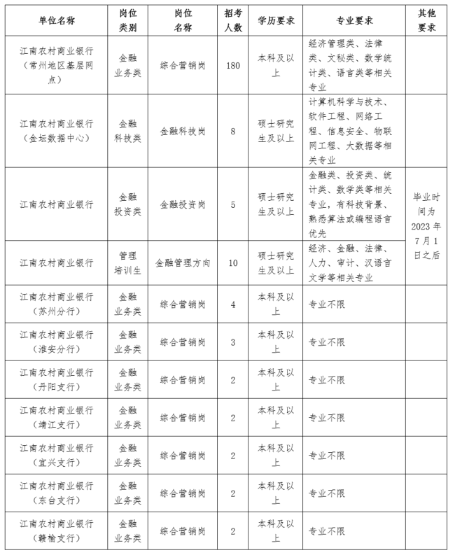 4.了解更多招聘讯息及相关动态,敬请关注“江南农商银行”微信公众号。