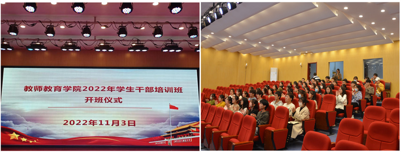 为深入学习宣传贯彻党的二十大精神和习近平总书记关于青年工作的重要思想,打造一支理想信念坚定、业务能力过硬、工作作风扎实的高素质学生干部队伍,11月3日,教师教育学院在艺术楼报告厅举行2022年学生干部培训班开班仪式。学院党政领导班子、全体辅导员出席仪式,各学生组织主要负责同学,2021级、2022级各班班长、团支部书记参加开班仪式。仪式由学院党委副书记左劲中主持。