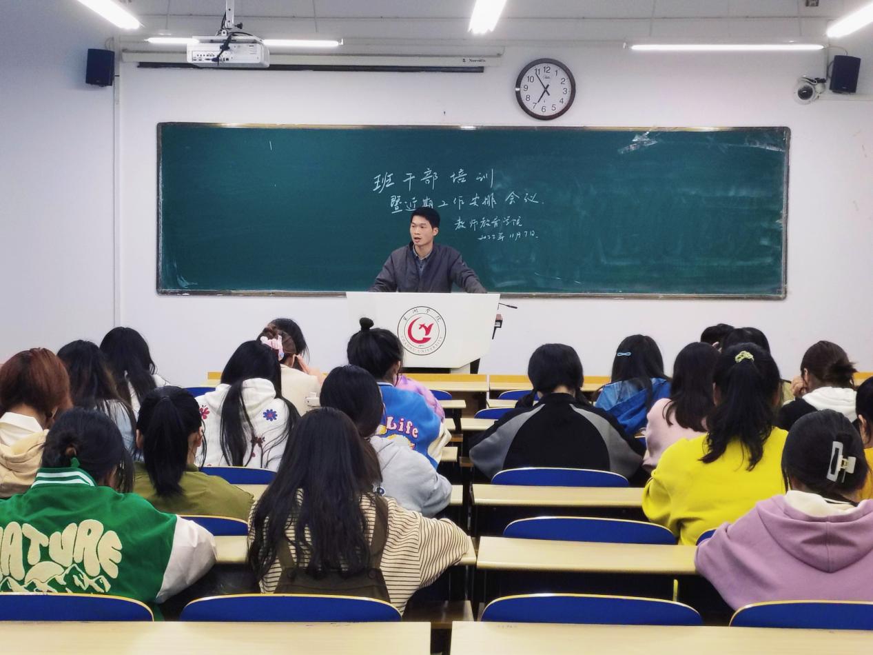 为加强班级学风和班级建设,提高班委业务能力,以及近期班级工作安排。11月7日,博学楼316召开班委培训暨近期班级工作安排会议,20级、21级、22级(专升本)学前教育专业所有班级及学生代表参加会议。