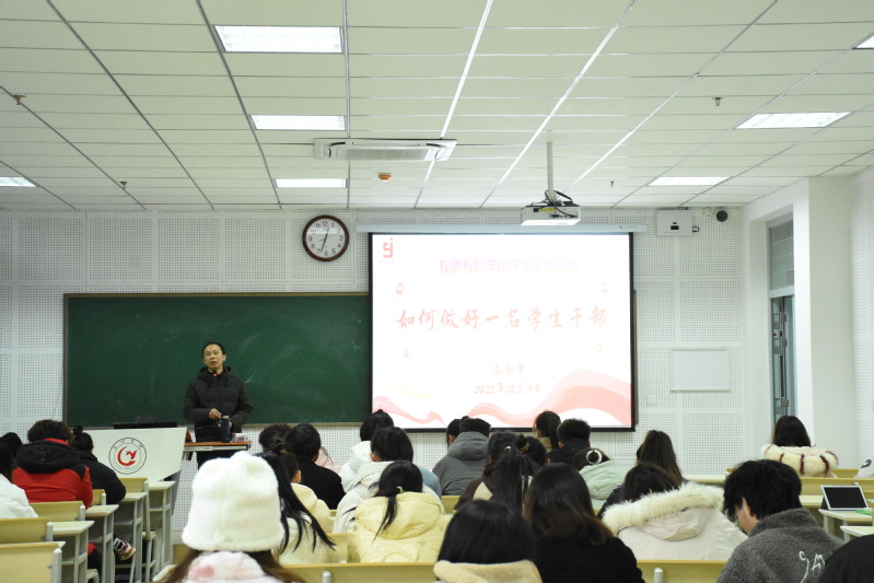 为深入学习贯彻党的二十大精神,不断增强学生干部组织力、引领力、服务力,打造一支理想信念坚定、业务能力过硬、工作作风扎实的高素质学生干部队伍,12月3日下午,教师教育学院2022年学生干部培训班第三讲在崇学楼南304开讲,学院党委副书记、纪委书记左劲中作了题为《如何做好一名学生干部》的专题讲座,学院各学生组织主要学生干部和班级班长、团支书参与此次培训。
