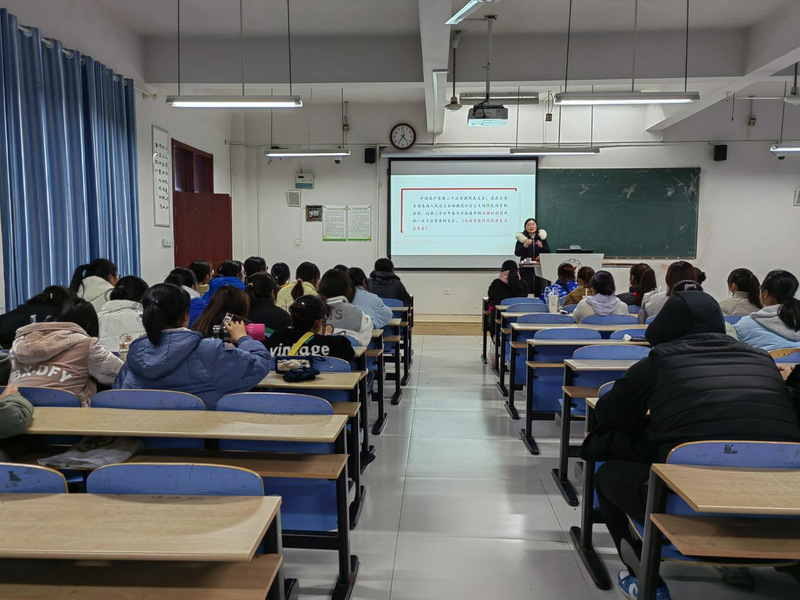 12月6日下午校团委书记王倩走进联系班级教师教育学院22级学前教育一班团支部开展党的二十大精神宣讲。班级全体同学参加,宣讲会由辅导员陈高言主持。