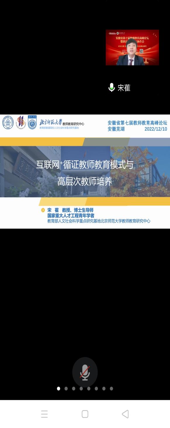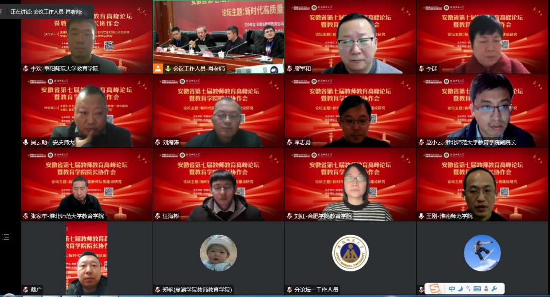 为了更好地与省内各高校的教师教育学院相互交流,学习学前教育专业认证的经验。2022年12月10日,教师教育学院副院长蔡广和郑艳应邀参加了安徽省第七届教师教育高峰论坛暨教育学院院长协作会。本次会议采取线下和线上共同开展的形式,线上采用腾讯会议,线下会议地点在安徽芜湖海螺大酒店309会议室。