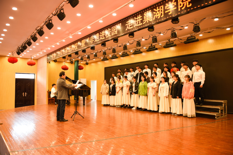 我院教师崔雁涛、王程博士协同中国合唱协会理事、安徽省合唱协会指挥专业委员会副会长,安徽省音乐学科专家,安徽省素质教育评审专家王华金深入课堂,排练合唱曲《万泉河水清又清》。在指导过程中专家强调音乐感觉和音乐表现力,鼓励学生们通过自身的感性认知和表现方式来诠释音乐作品,从而达到更加准确和深入的艺术表达。