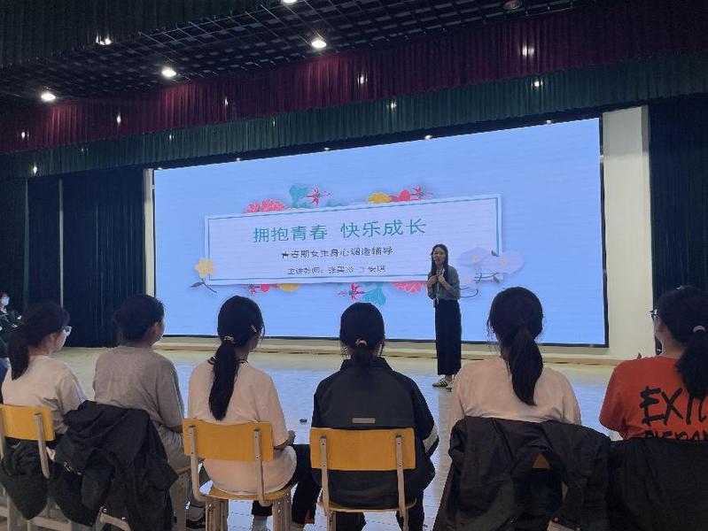 活动伊始,张碧影老师带领团队成员进行自我介绍,共同制定团体契约,让成员们快速认识领导者、了解活动的目的和意义。通过讲解青春期的小烦恼、青春期的小秘密,帮助女生关注青春期之后的身心变化,尤其是对青春期的不安和烦恼多一些关怀和指引。随后带领大家开展热身活动,舒展身体,完成破冰任务。现场同学们积极参与,互动气氛热烈。