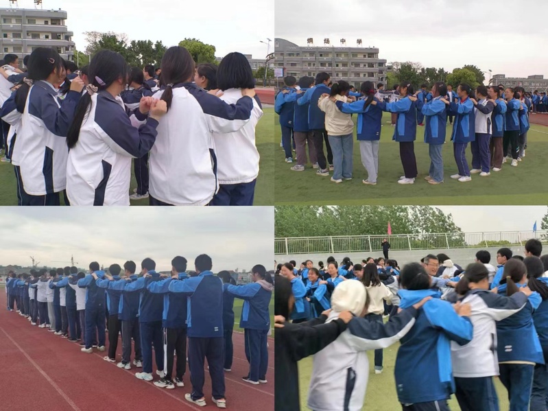 活动伊始,烔炀中学高三学生共十个班级依次进场,全体教师强调各自所带领班级的团辅契约后,组织学生们开展热身放松活动,学生们伴随着音乐的韵律共同跳起“兔子舞”,充分调动起学生积极的情绪体验,随后,引导学生们开展互助放松活动,在此过程中学生们纷纷感受到同学之间的相互支持,创设轻松的氛围,激发全体学生活力。