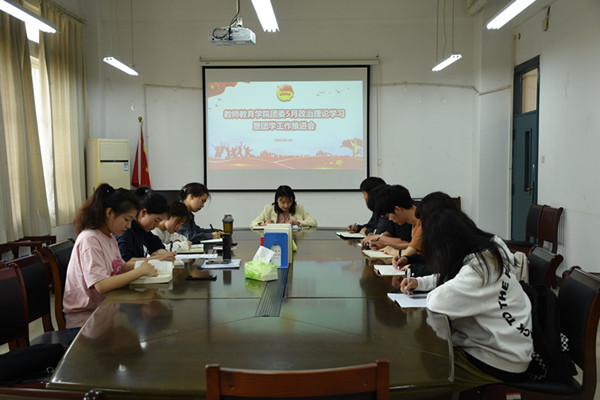 为提升学生干部的政治理论水平,充分发挥基层团组织的积极性和主动性,进一步加强学院团学组织建设,推进团学各项工作顺利开展。5月10日中午12:00,教师教育学院团委在党员活动室召开5月份政治理论学习暨团学工作推进会,学生兼职团委副书记、各学生组织主要负责人参加会议,本次会议由学院团委副书记汤重主持。