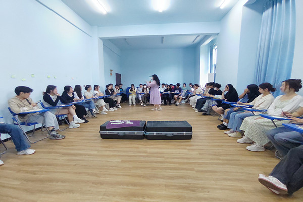 活动开始,袁蕙介绍了本次活动的内容,并向学员们说明心理团体辅导所需要遵守的规则。在“oh卡”环节,利用“oh卡”使得自己与卡片产生联结从而探索自己的内心世界,学员们根据自己抽到的卡片介绍自己,根据卡片中的状态表达自己。在“打开时间任意门”环节,学员们组成小组,记录五个对自己具有重要意义的时间段,通过“oh卡”对其进行排序,达到认识自我的目的。期间,袁蕙在各小组内发放彩虹卡,由小组内学员共同分享并发表自己的想法。活动最后,袁蕙向学员们寄予祝福,希望学员们意识到喜欢自己比喜欢世界更重要,在成长过程中不断自我觉察,探索内心世界。