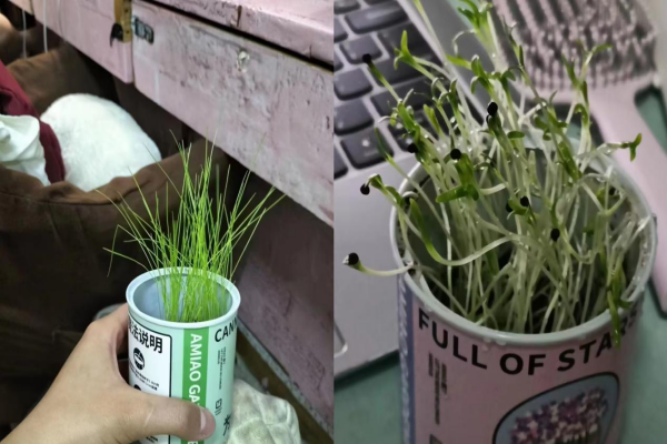 绿色是生命的象征。心理学研究发现,“园艺疗法”能够帮助个体消除不安和急躁情绪,增加活力,培养忍耐力和注意力,树立信心以及增强责任感。同学们在活动中亲身培育、照顾和分享小苗成长的点滴过程,通过植物成长记录打卡感悟生命活力,集聚心源动力。