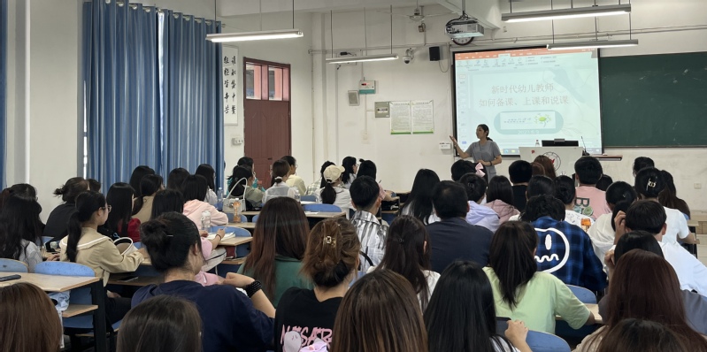 讲座结束后,在互动交流环节,针对学生提出的幼儿园教学活动开展的具体问题,於婷婷耐心、细致地一一解答,现场不时响起热烈的掌声和会心的笑声。