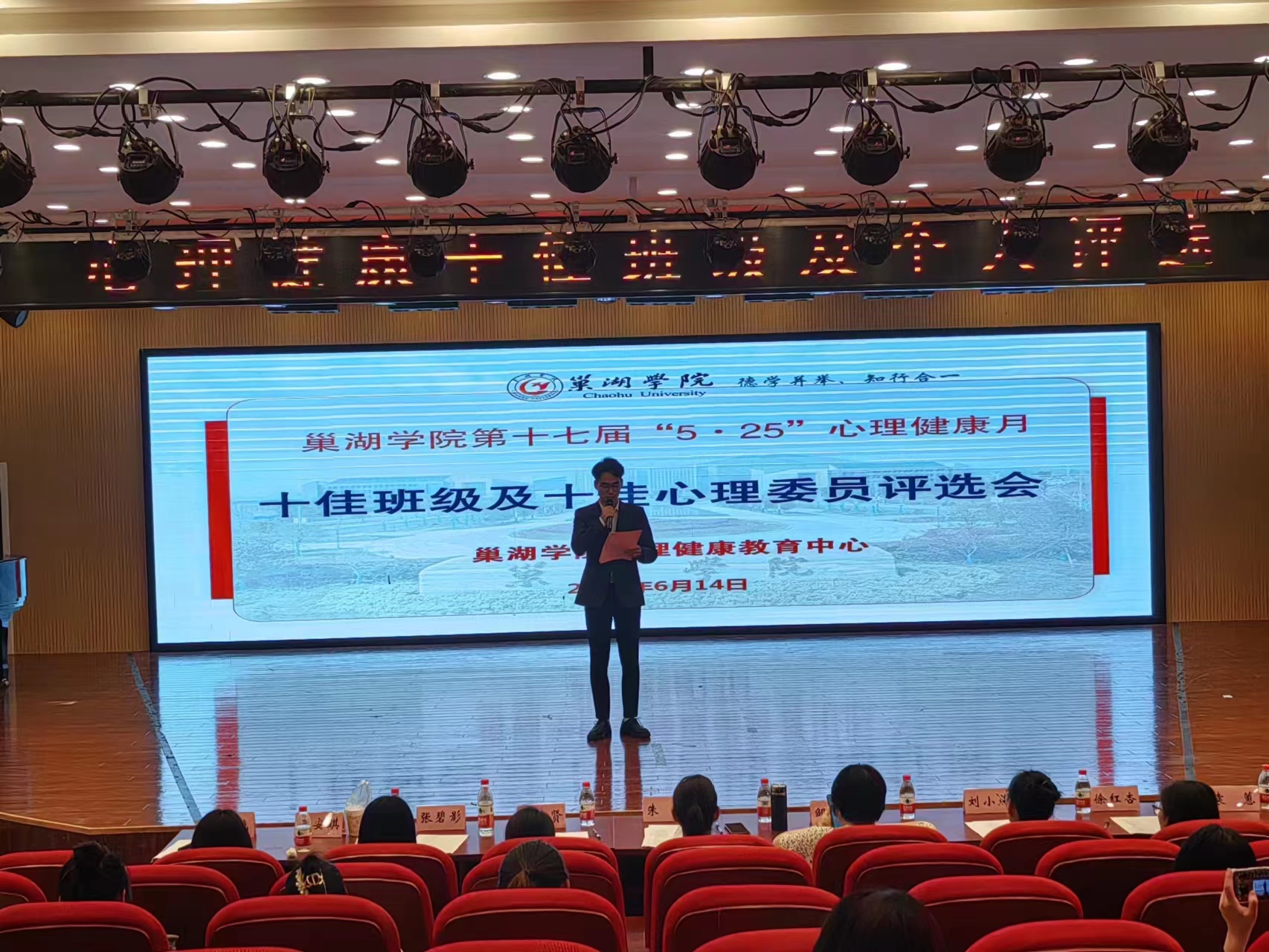 为了进一步提升心理委员工作在学习生活中的重要性在心理委员队伍建设中树榜样、立典型,增强班级凝聚力,必赢76net官网心理健康教育中心联合各学院于6月14日晚7点在艺术楼报告厅开展必赢76net官网第十七届“5·25”心理健康月系列活动之“绽放青春·向阳生长”十佳班级及十佳心理委员评选活动。心理健康教育中心副主任郑艳、心理健康教育中心教师邹长华、朱平、贾艳贤、张碧影、袁蕙、计算机学院二级心理辅导站站长刘小燕、经法学院二级心理辅导站站长徐红杏、心理健康教育中心王安琪出席并担任评委,各学院心理委员、学院推荐的优秀心理班级的班长团支书代表参加了本次活动。