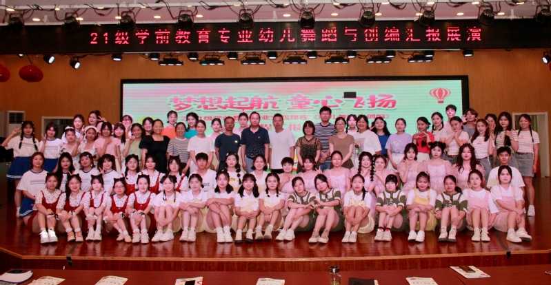 2023年6月15日下午16时30分,教师教育学院在艺术楼多功能音乐报告厅举办2021级学前教育专业《幼儿舞蹈与创编》课程汇报演出。此次专业汇演由专业教师刘杨担任导演与监制,2021级学前教育专业全体同学共同参演,教师教育学院党委书记朱玉票、副院长蔡广、副院长郑艳,学前教育专业教师与辅导员出席并观看汇报演出。