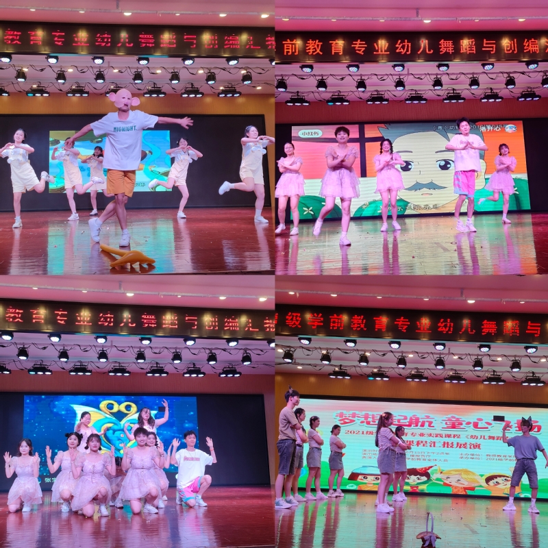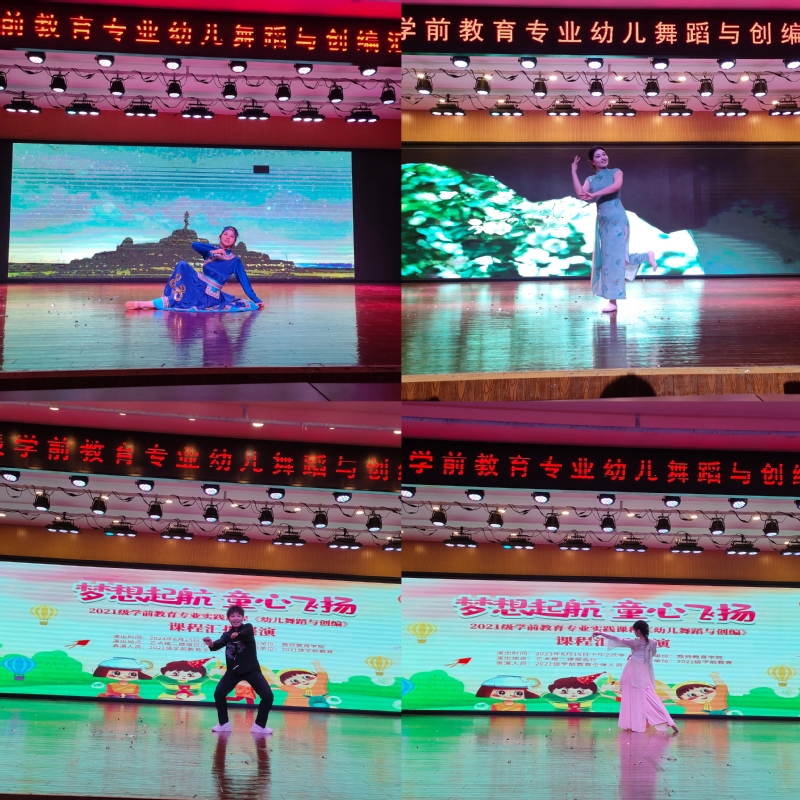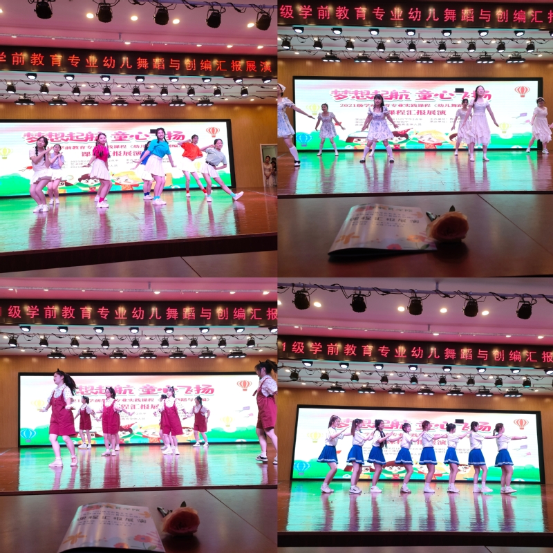 本次汇演所有节目,皆由2021级学前教育专业师生共同思考创新,共同编排与训练才得以完成。汇报演出充分展示了《幼儿舞蹈与创编》课程的教学效果,有效体现了“学生中心,成果导向”的教育教学理念,为进一步深化学前教育专业艺术类课程教学改革,提供了成功的借鉴经验。(文/甘超、郑好 图/刘杨 初审/郑艳 终审/蔡广)