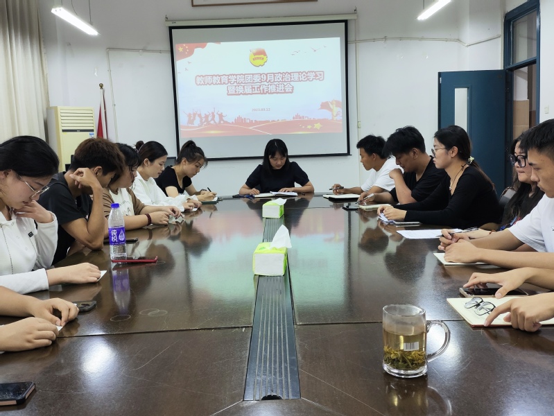 为高效有序做好换届工作,进一步提升团学骨干政治理论水平,9月12日中午12:30,教师教育学院团委在艺术楼党员活动室召开9月份政治理论学习暨换届工作部署会。学生兼职团委副书记、各学生组织主要负责人参会,本次会议由学院团委副书记汤重主持。