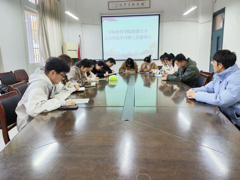 为高效有序推进学院共青团工作,进一步提升团学骨干思想素质,11月17日下午,教师教育学院团委在艺术楼党员活动室召开11月政治理论学习暨工作部署会,学院教师挂职团委副书记代佳鑫、学生兼职团委副书记、各学生组织负责人准时参会。此次会议由学院团委副书记汤重主持。