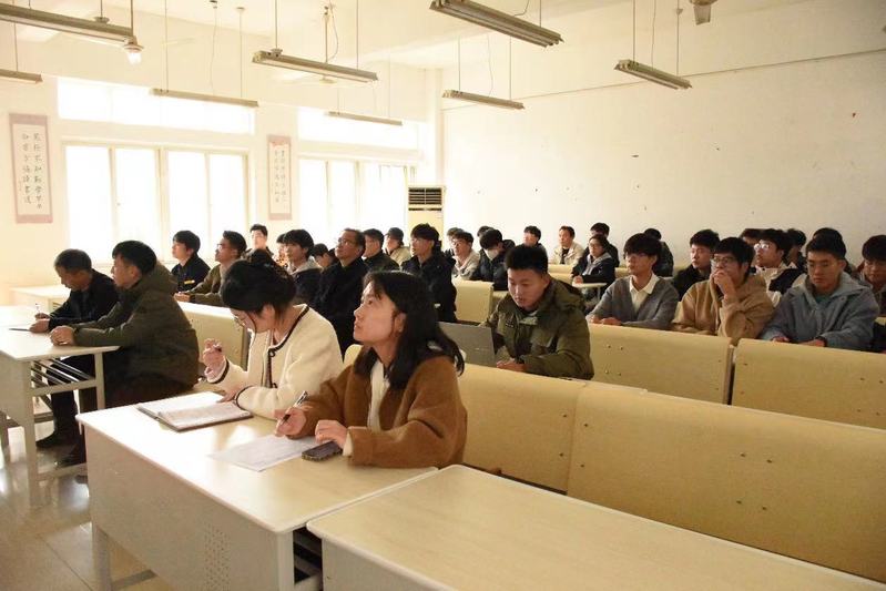 宣讲会上,与会师生集中观看了征兵入伍公益宣传片。