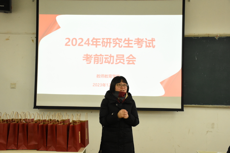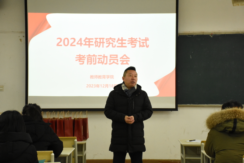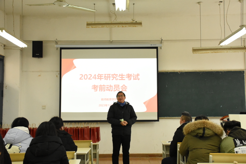 2024年国家硕士研究生招生考试在即,为缓解考研压力,鼓舞考研士气,坚定考研信心,12月18日下午,教师教育学院在艺术楼东221教室举办2024年研究生考试考前动员大会。学院党政领导班子全体成员、就业联络员代佳鑫、毕业班辅导员、2024年考研学子参加活动。会议由学院党委副书记左劲中主持。