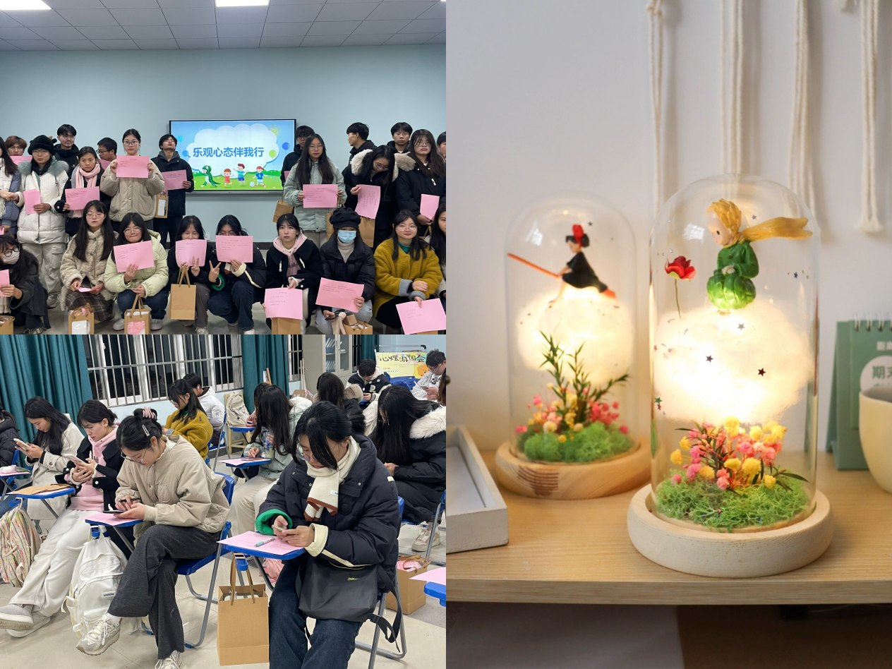 随后,还组织了有趣的手工疗愈——永生花活动。首先,永生花作为一种美丽的植物,能够给同学们带来愉悦和放松的感觉。其次,永生花的制作过程也可以成为一种治愈心灵的方式。在制作永生花的过程中,同学们需要耐心、细心和专注,这种过程可以帮助同学们平静下来,专注于当下,减少内心的纷扰和焦虑。此外,永生花还具有一种象征意义,代表着生命力和坚韧不拔的精神。