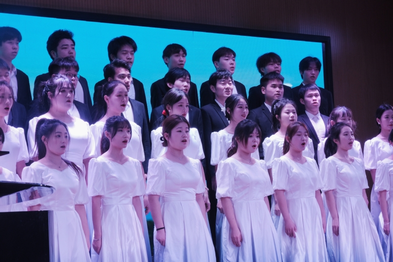 本场音乐会有11个爱国曲目,除了传统的《保卫黄河》《我和我的祖国》《黄水谣》这些耳熟能详的经典歌曲,还增加了《雪花的快乐》《百年守望》一些让人耳目一新的旋律优美的曲目。同学们为了能够准确深刻表达歌曲内在的爱国情感,前期充分准备,查找资料、了解歌曲创作的时代背景、体会革命先辈的努力和奋斗,在与指导教师不断沟通、反复打磨、仔细推敲地过程中,每位同学做到了入脑入心,通过集体合唱把歌曲中的家国情怀深刻地表现出来。音乐会中,还特别邀请了中国青年指挥家、广东音乐曲艺团常任指挥李仕成作为经典曲目的指挥,同学在指挥的指引下,时而气势磅礴、时而低声吟唱,时而节奏明快,时而悲怆婉转,给所有在场师生震撼的艺术效果。音表专业的学子们通过悠扬的歌声展示了在学期间的学习成果,向观众展现了他们对音乐艺术的热爱和专业水平。