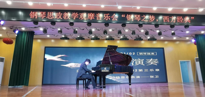 此次钢琴思政教学观摩音乐会作为教师教育学院“‘美育浸润’音乐实践周”系列音乐会最具特色的演出活动之一,由杨丹老师精心策划,包括上午场《钢琴之梦,西方经典》和下午场《钢琴之韵,中国之音》两个主题场次。在音乐会上,同学们演凑的一首首饱含爱国情怀和优秀传统文化底蕴的曲目扣人心弦,跳动的音符,昂扬的旋律,让在场的所有师生和听众沉浸其中。