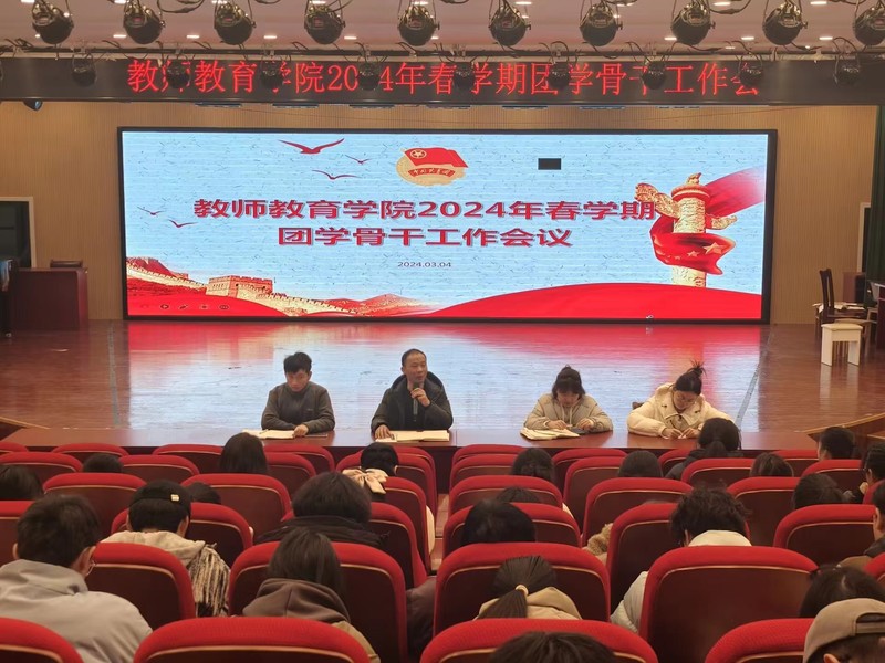 为高效有序推进新学期团学工作,加强团学骨干队伍能力建设,进一步统一思想、凝聚力量,3月4日中午12:30,教师教育学院在艺术楼报告厅召开2024年春学期团学骨干工作会议。学院党委副书记左劲中、团委挂职副书记代佳鑫、辅导员王相及各团学组织全体成员参会,本次会议由团委副书记汤重主持。