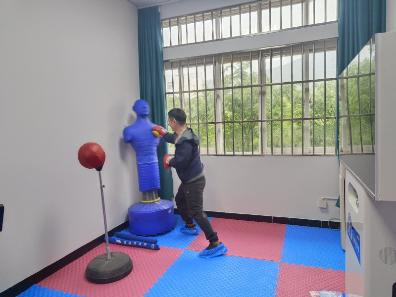 合理的宣泄是一种美好生活的必要手段,遇到生活中会有诸多的不顺,通过合理的宣泄方式将压力释放出来,可以有效地提高生活质量。在宣泄治疗室为参观者准备了拳击设备,包括手套,宣泄人、宣泄沙袋等简单的宣泄动作载体,参观者用最直接的物理方式疏解压抑心情。