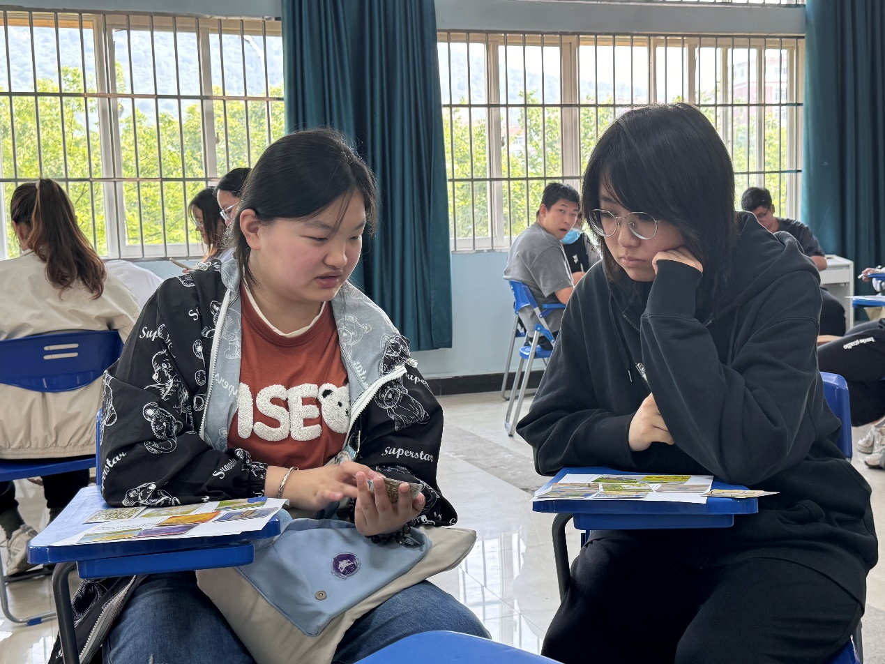 除了个人分享外,团辅课上还开展了小组讨论和集体互动环节。同学们在小组内围绕OH卡上的主题展开讨论,分享彼此的看法和感受。在集体互动中,大家通过描述手中OH卡给自己的感受,进一步加深了对OH卡所传递信息的理解和应用。