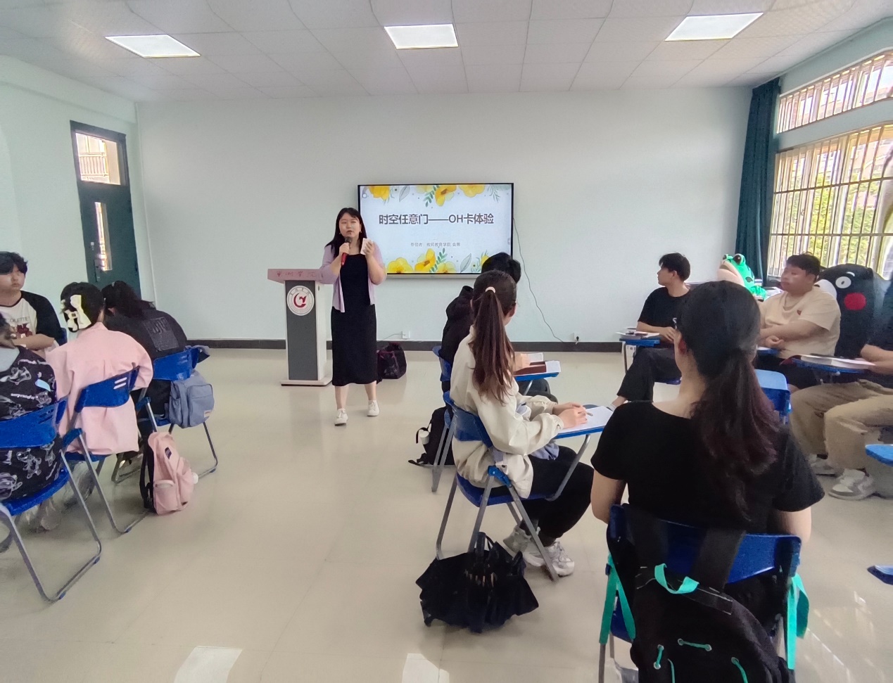 活动伊始,袁蕙老师详细介绍了OH卡的起源、原理及使用方法。OH卡作为一种心理学工具,通过图像与文字的结合,引导个体在潜意识层面进行自我投射,从而揭示内心的真实感受和需求。随后,同学们在老师的指导下,纷纷抽取OH卡,并根据卡片内容进行自我介绍和分享。