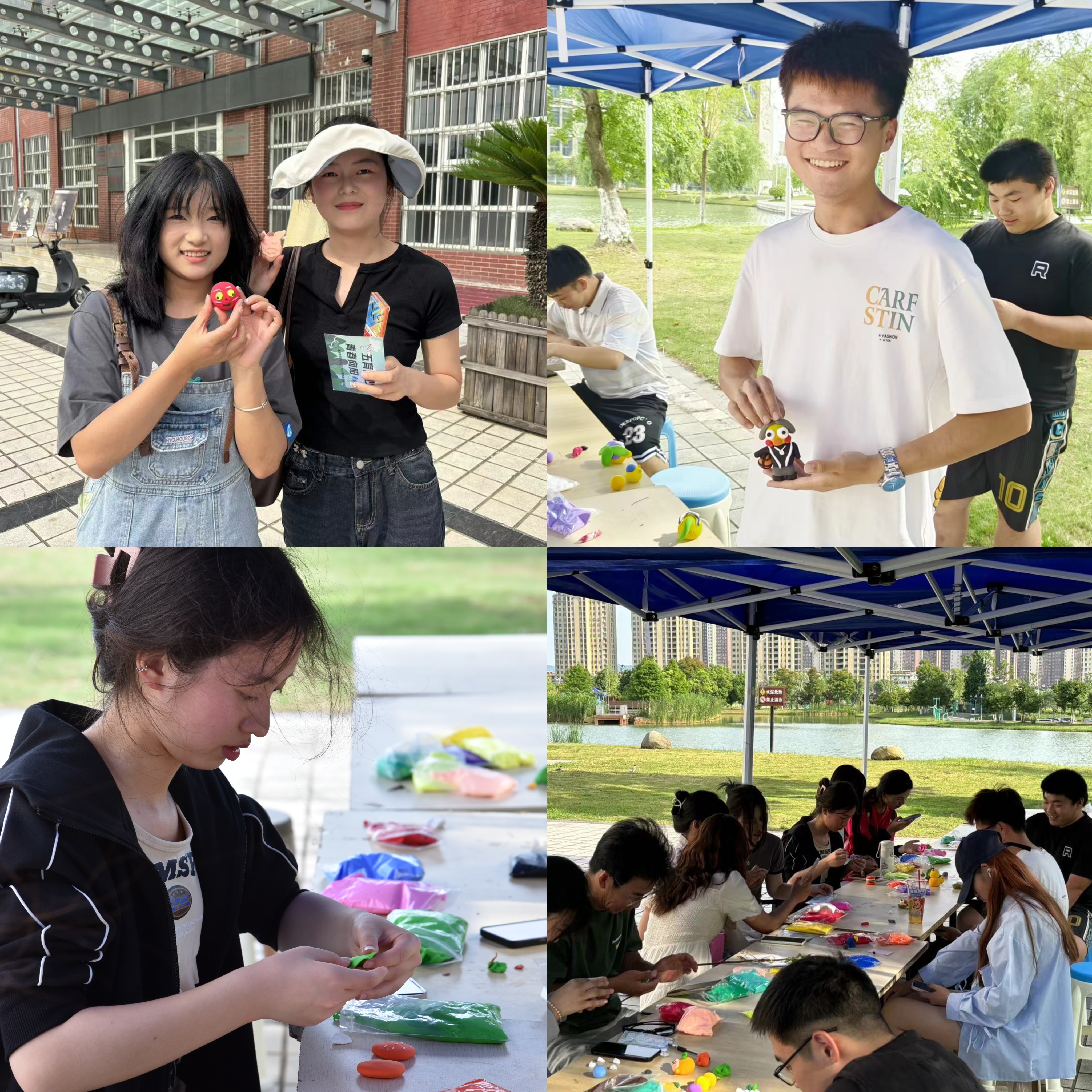 繁忙的学习生活中,我们需要一个时间停下来,在泥塑教具和心灵手巧制精品区,同学们有序地排队领取材料,之后就安静地坐在桌子前和草地上开始创作,将黏土揉捏成各种形状,在创作过程中找到内心的平静与慰藉,将希冀化作创意,用心感受当下即是在为自己心理赋能,体现了“以美润心”。