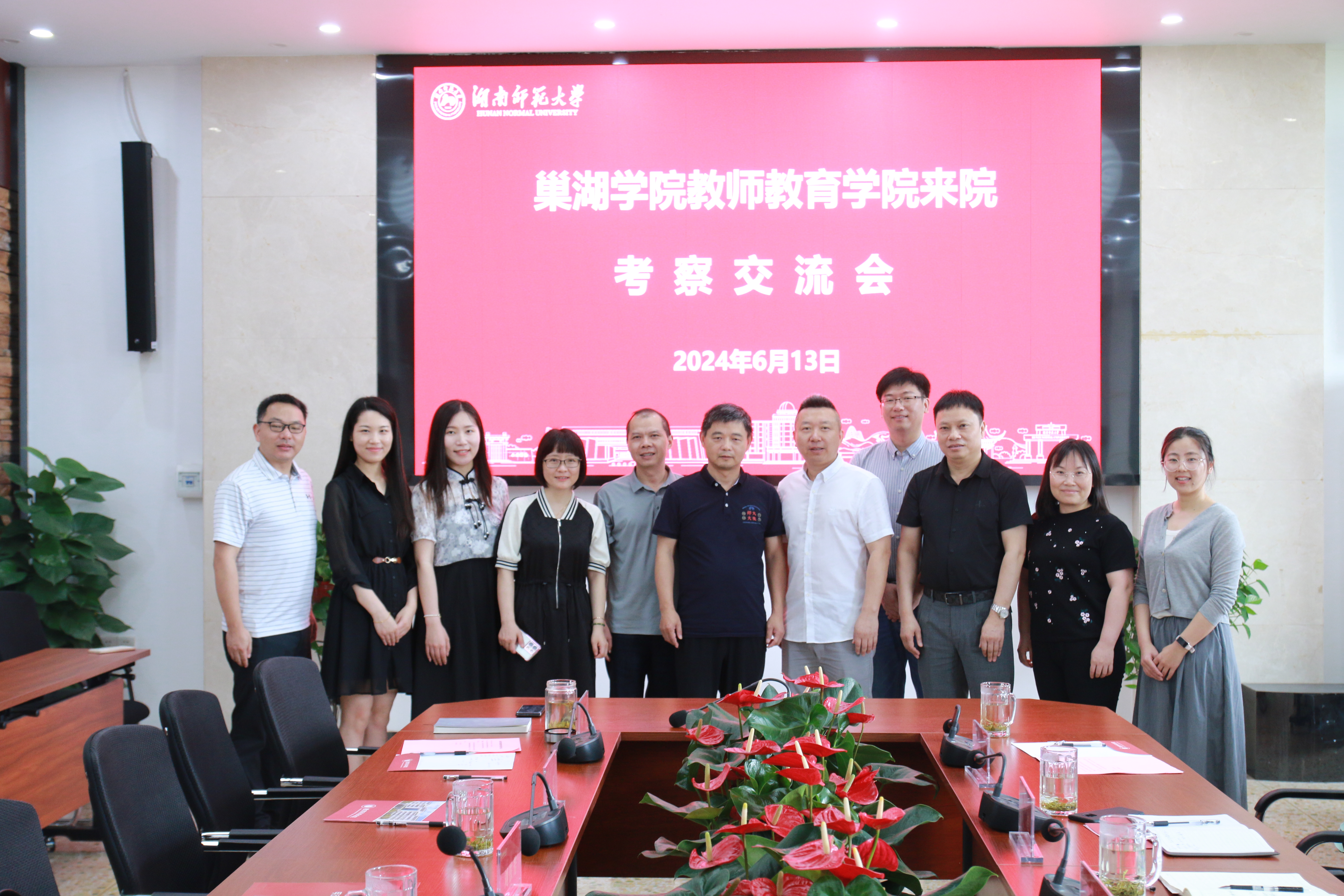 6月13日,在湖南师范大学教育科学学院考察交流期间,学院院长刘铁芳,副院长赵亮,心理学系主任屈卫国,教育学系主任叶波,学前教育学系主任康丹,实验室主任范伟参加了考察交流会。