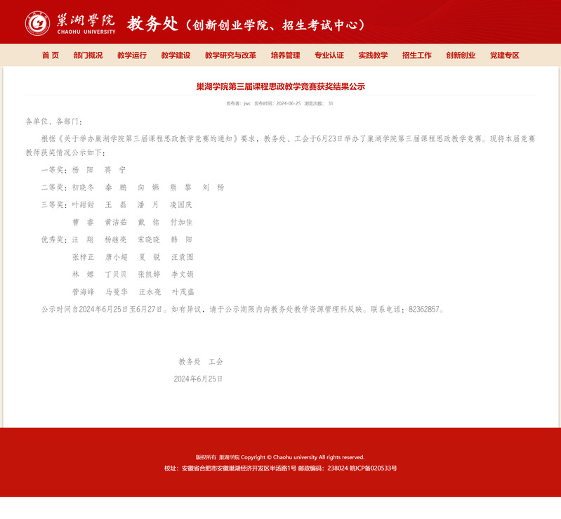 祝贺我院两位青年教师刘杨、戴铭在必赢76net官网第三届课程思政教学竞赛中荣获佳绩!